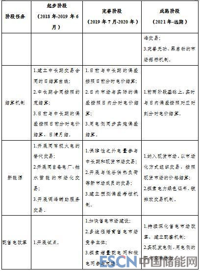 起步階段(2018年-2019年6月)建立新能源與常規(guī)火電機組、自備企業(yè)等市場主體的日前交易機制;完成發(fā)電側(cè)中長期交易合同日分解規(guī)則。