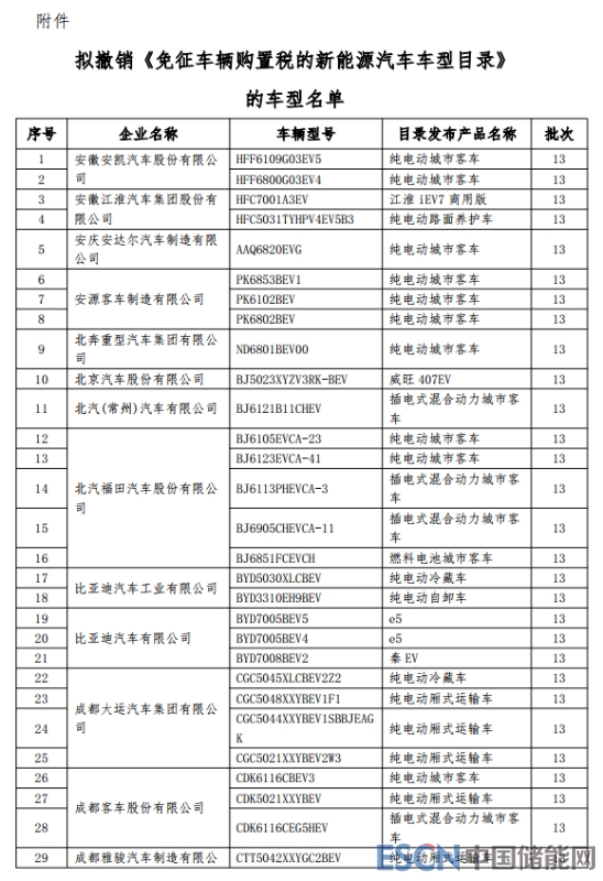 中國儲能網(wǎng)訊:日前,工信部發(fā)布了《關(guān)于擬撤銷<免征車輛購置稅的新能源汽車車型目錄>名單的公示》。據(jù)統(tǒng)計,本批名單包含77家企業(yè)的199款車型,其中含14款新能源乘用車,涉及車型包括比亞迪e5、比亞迪秦EV、奇瑞eQ1、昌河北斗星E、江鈴E160等。