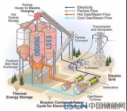 NREL首席研究員馬志文(音譯)解釋說(shuō),當(dāng)電力最便宜的時(shí)候,電加熱器“通過(guò)將穩(wěn)定、廉價(jià)的固體顆粒加熱到1100攝氏度以上,為儲(chǔ)能模塊'充電'”。當(dāng)需要釋放這種能量時(shí),熱粒子將通過(guò)熱交換器加熱工作流體,驅(qū)動(dòng)附著在發(fā)電機(jī)上的高效率閉環(huán)布雷頓聯(lián)合循環(huán)系統(tǒng)。