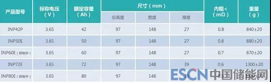 目前,億緯鋰能已擁有容量分別為42Ah、50Ah、72Ah的三款方形鋁殼三元電池產(chǎn)品,并在開發(fā)60Ah、80Ah的下一代產(chǎn)品,尺寸均符合VDA標準。這類電池采用多極耳卷繞工藝,內(nèi)阻小,循環(huán)性能好,生產(chǎn)效率較疊片高1倍以上;單體能量密度達到200Wh/kg,成組效率高達90%。