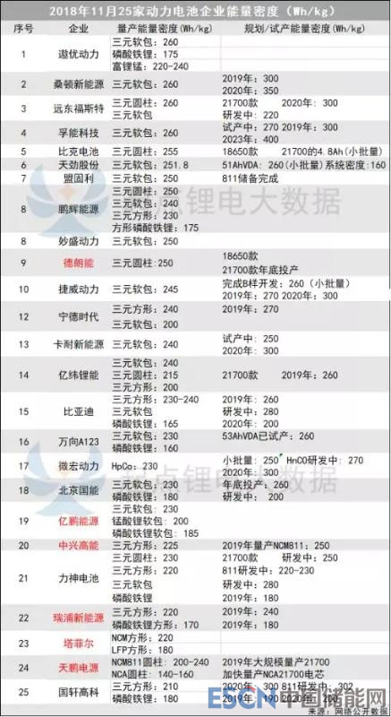 由于補(bǔ)貼退坡和門檻上調(diào),倒逼企業(yè)迅速破解各大技術(shù)門檻,提升能量密度。起點(diǎn)鋰電大數(shù)據(jù)整理了25家動力電池企業(yè)量產(chǎn)的電池產(chǎn)品能量密度及未來規(guī)劃,以供行業(yè)參考。