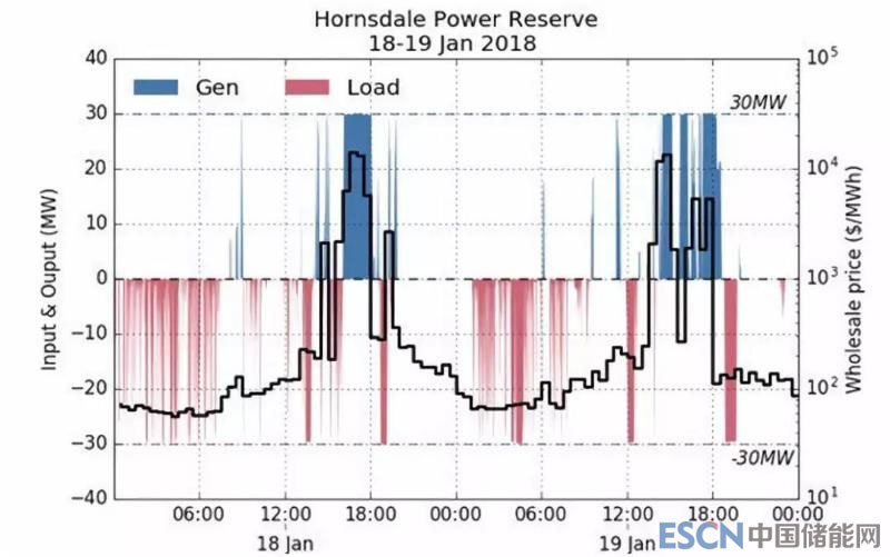 2018年1月有報(bào)道稱,項(xiàng)目通過(guò)自充電可獲利1000美元/MWh,短短幾天就賺取約100萬(wàn)美元高額利潤(rùn)。如下圖1顯示,特斯拉系統(tǒng)協(xié)助Neoen參與電力市場(chǎng)交易。