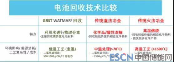 研發(fā)電池的同時(shí),GRST就考慮到了后續(xù)電池回收問題,同步研發(fā)新型電池回收技術(shù),而其與傳統(tǒng)回收方法相比也可謂獨(dú)樹一幟。