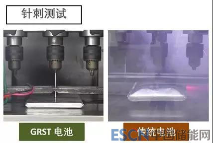 除此外,GRST還通過材料改造和結(jié)構(gòu)設(shè)計(jì),大大提高了電池的安全性。在針刺測(cè)試中,GRST鋰電池完全保持穩(wěn)定,而同材料體系下,傳統(tǒng)電池發(fā)生冒煙起火現(xiàn)象。而GRST針對(duì)礦用產(chǎn)品所開發(fā)的高容量軟包電池,可以完全通過10V過充的苛刻要求,僅出現(xiàn)鼓包情況,表面溫度低于150?C,而同材料體系下,傳統(tǒng)電池發(fā)生冒煙起火現(xiàn)象。