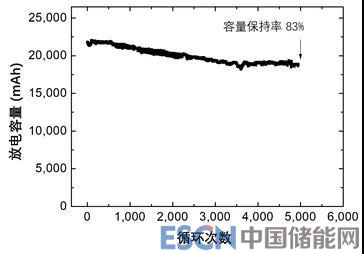 根據(jù)不同應(yīng)用領(lǐng)域,GRST電池的預(yù)期壽命范圍達(dá)3000-5000次循環(huán)。對(duì)于儲(chǔ)能系統(tǒng)(ESS),循環(huán)5000次后容量保持率>80%;對(duì)于電動(dòng)汽車,循環(huán)3000次以后容量保持率>80%;對(duì)于消費(fèi)類電池產(chǎn)品和電動(dòng)工具,循環(huán)1000-1500次后容量保持率>80%。
