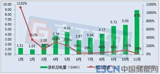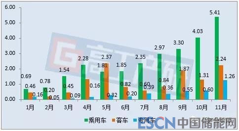 2018年1-11月新能源汽車電池裝機電量分析(GWh)