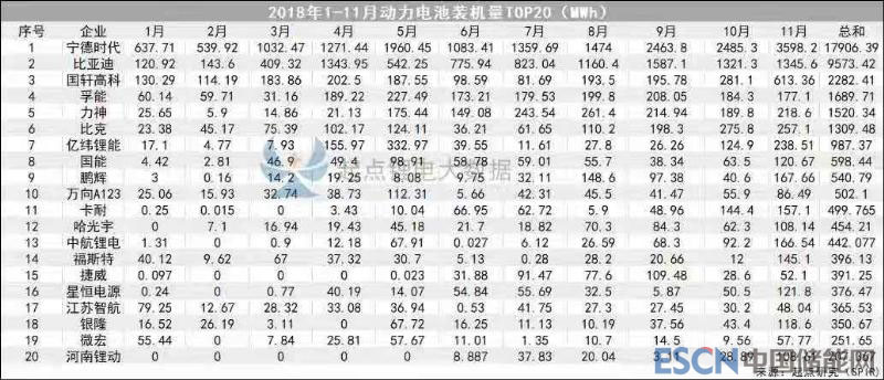 1-11月電池裝機(jī)量TOP20:河南鋰動(dòng)“金榜題名”