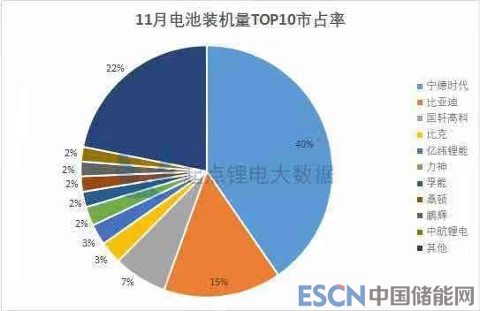11月裝機(jī)量排名前十的企業(yè)分別是寧德時(shí)代、比亞迪、國(guó)軒高科、比克、億緯鋰能、力神、孚能、桑頓新能源、鵬輝和中航鋰電。