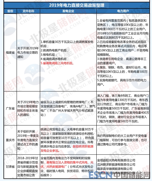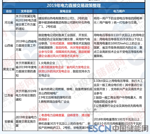 不僅是山西省,近期多個(gè)省份發(fā)布了2019年電力市場交易通知,其中都有明確提到新能源發(fā)電可作為發(fā)電企業(yè)參與電力交易,北極星儲(chǔ)能網(wǎng)梳理了這些電力交易文件,詳表如下:
