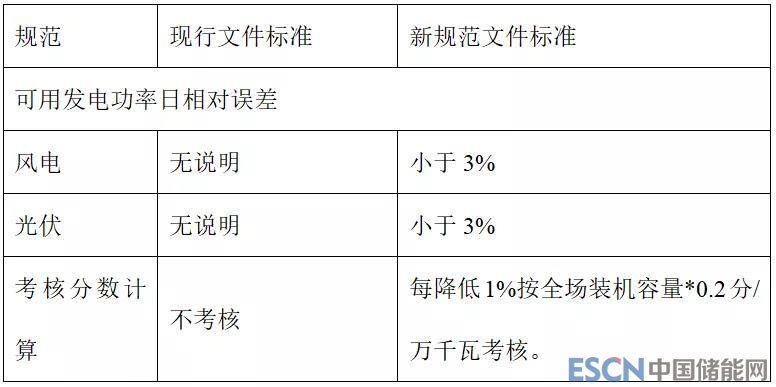 風(fēng)電場、光伏電站應(yīng)按照國家相關(guān)規(guī)定,具備風(fēng)電或光伏功率預(yù)測功能,不具備此功能者,需限期整改,逾期未完成整改者按每月考核。新舊版本考核分?jǐn)?shù)變化如下表1