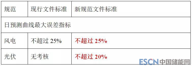 風(fēng)電場、光伏電站應(yīng)按時向電力調(diào)度機構(gòu)報送短期功率預(yù)測曲線,風(fēng)電場提供的日預(yù)測曲線最大誤差不超過25%,光伏電站提供的日預(yù)測曲線最大誤差不超過20%,若未達(dá)標(biāo),則按偏差積分電量0.2分/萬千瓦時考核。(風(fēng)電、光伏出力因電網(wǎng)原因受控時段不考核,單日限電時長超過設(shè)定值后全天不考核。)