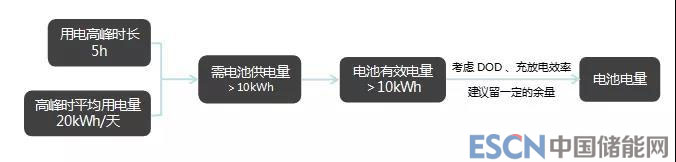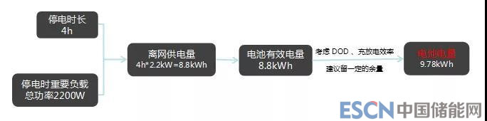 其中離網(wǎng)時的用電總功率和離網(wǎng)預計時間是最關鍵的參數(shù)。以停電預計的最長時間4小時來計算,其設計思路可參考: