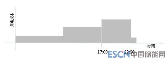 峰谷電價的結構大致如下圖所示,17:00 - 22:00為用電高峰期: