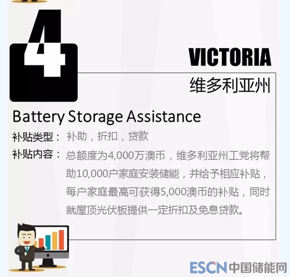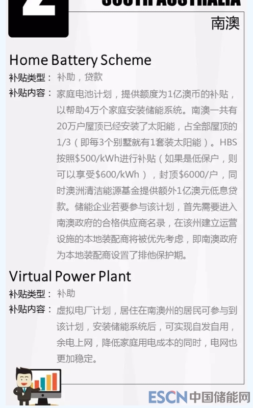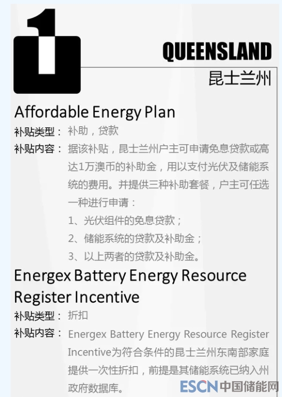 中國儲能網(wǎng)訊:澳大利亞儲能市場發(fā)展迅速,其中最吸引業(yè)內(nèi)人士的莫過于儲能補(bǔ)貼政策,以下整理澳洲各地儲能政策。