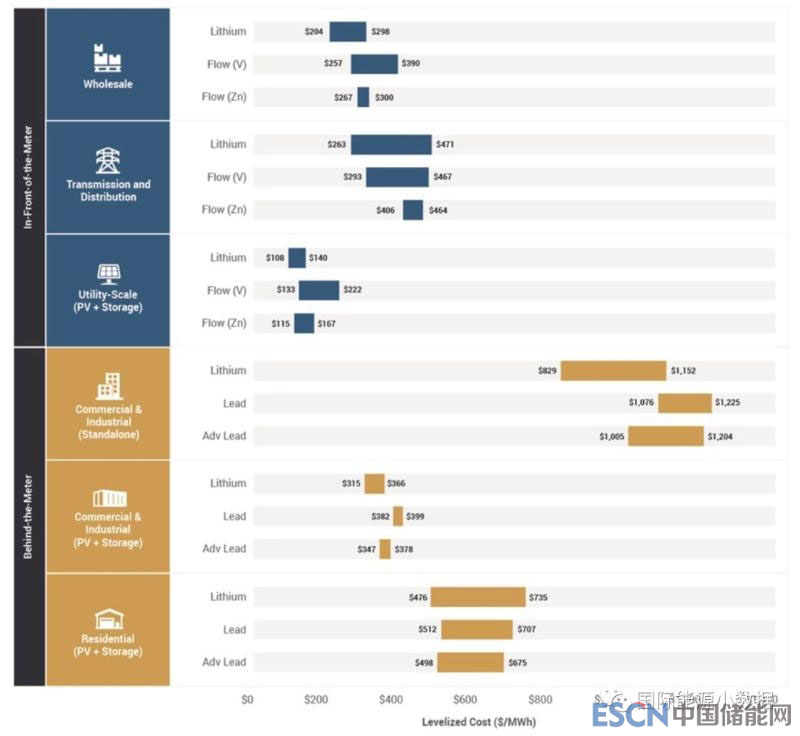 鋅液流電池:406-464美元/兆瓦時(shí)