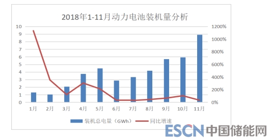 數(shù)據(jù)顯示,2018年1-11月份中國動力電池裝機(jī)量達(dá)43.63GWh,同比增長77%。從材料體系來看,三元電池裝機(jī)量為25.21GWh,占比約57%,同比增長約76%。