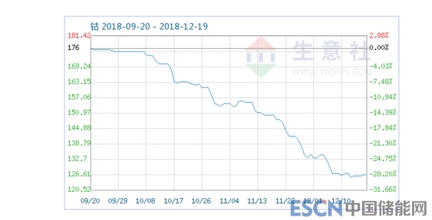 但進(jìn)入今年后,鈷、鋰等產(chǎn)品風(fēng)光不再。碳酸鋰的噸價(jià)由去年高點(diǎn)時(shí)的近18萬元降至目前7~8萬元。而鈷價(jià)自5月開始走低,10月至今不到三個(gè)月時(shí)間內(nèi),金屬鈷價(jià)格已大降30%。