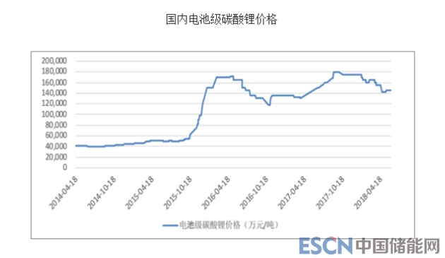 據(jù)統(tǒng)計(jì),2015年時(shí),碳酸鋰價(jià)格尚不足5萬元/噸,此后曾一路上漲至15萬元/噸左右,去年也曾逼近18萬/噸的高點(diǎn)。2016年初,電解鈷的價(jià)格約為20萬元/噸,自2016年四季度開始,鈷產(chǎn)品價(jià)格開始大漲,最高點(diǎn)時(shí)一度超越60萬元/噸。