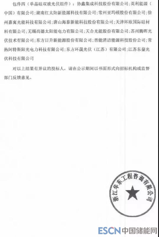 中國儲能網(wǎng)訊:今日,中電建公示了2019年度1GW光伏組件框架集中采購項目的入圍結(jié)果,四個標(biāo)段共計25家企業(yè)入圍,詳情見下表。