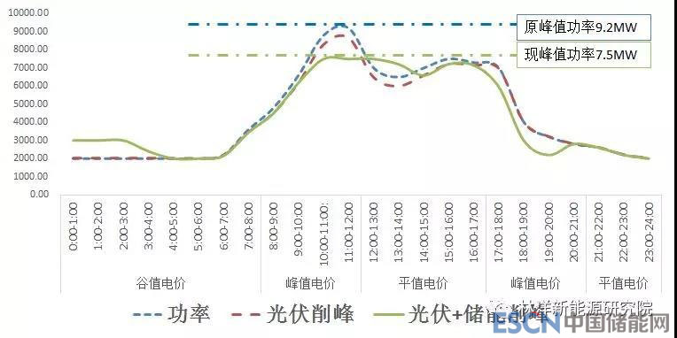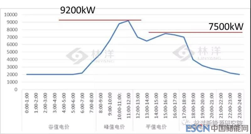 增加光伏+儲(chǔ)能系統(tǒng)后,工廠的用電曲線從原來(lái)的峰值9200kW降低到不超過(guò)7500kW,用電曲線如下: