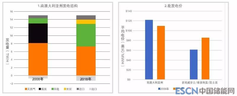 過去十年里,南澳州發(fā)電領域發(fā)生了天翻地覆的變化。煤炭發(fā)電在2016年徹底消失,天然氣發(fā)電也在減少。盡管南澳州的平均電價相比澳大利亞其它州依然較高,但下降的趨勢十分明顯??梢哉f南澳州是可再生能源發(fā)展的標志性地區(qū),儲能在這樣的電力體系中,也必將扮演著重要角色。