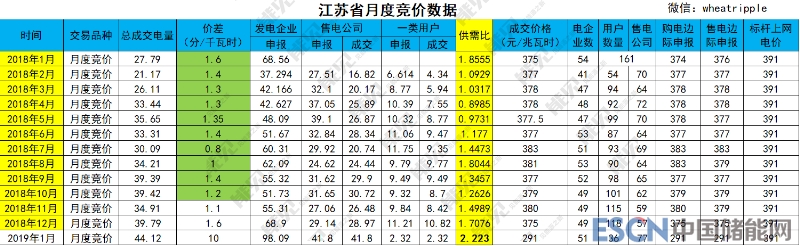 中國儲(chǔ)能網(wǎng)訊:據(jù)悉,江蘇電力交易中心12月25日公布2019年1月份月度集中競(jìng)價(jià)結(jié)果,相較于2018年1.5分/千瓦時(shí)的月度價(jià)差和2019年2.18分/千瓦時(shí)的年度雙邊交易價(jià)差,本次成交價(jià)格較標(biāo)桿電價(jià)下降破紀(jì)錄的0.1元/千瓦時(shí)。