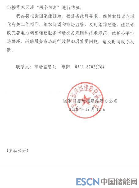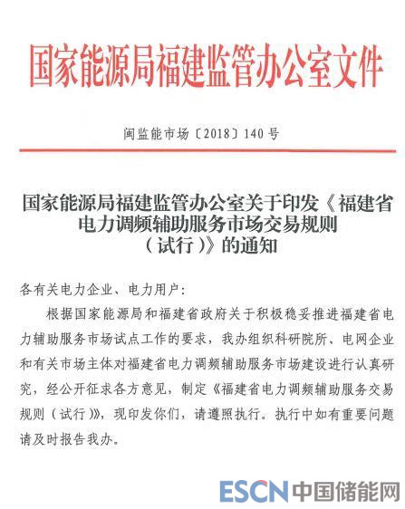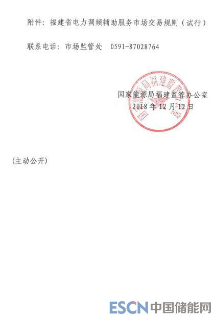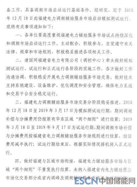 福建能監(jiān)辦日前發(fā)布了《關(guān)于福建省電力調(diào)頻輔助服務(wù)市場啟動運行有關(guān)工作的通知(閩監(jiān)能市場〔2018〕139號)》、關(guān)于印發(fā)《福建省電力調(diào)頻輔助服務(wù)市場交易規(guī)則(試行)》的通知(閩監(jiān)能市場〔2018〕140號),定于2018年12月18日起福建電力調(diào)頻輔助服務(wù)市場啟動模擬測試運行。2018年12月18日至2019年3月17日為模擬測試運行,期間調(diào)頻補償與分攤費用仍按原有華東區(qū)域“兩個細則”進行結(jié)算;2019年3月18日至2019年9月17日為試運行期,期間調(diào)頻市場補償與分攤費用按福建省電力調(diào)頻輔助服務(wù)市場規(guī)則進行結(jié)算,結(jié)算費用減半執(zhí)行;試運行期結(jié)束后,根據(jù)實際情況擇機轉(zhuǎn)入正式運行。