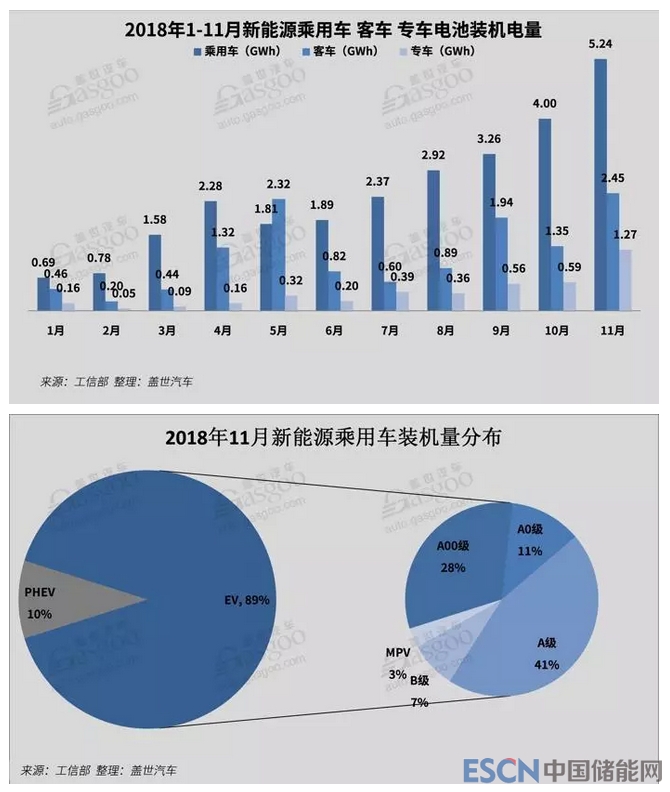從細(xì)分市場(chǎng)來看,乘用車、客車、專用車及貨車11月份動(dòng)力電池裝機(jī)量分別為:5242.4 MWh、2449.2 MWh、1269.8 MWh,環(huán)比分別增長(zhǎng)31.1%、82.0%、113.5%。新能源客車本月產(chǎn)量達(dá)到16,792輛,創(chuàng)2018年單月客車產(chǎn)量新高。2019年新能源補(bǔ)貼政策雖然尚未發(fā)布,但大幅下調(diào)幾乎已成定局,年末沖量的趨勢(shì)與去年同期相類似。
