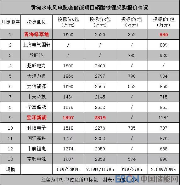 在最終入圍的13家企業(yè)里,深圳昱澤新能報(bào)價(jià)處于較高位置,僅次于南都電源。青海綠草地則報(bào)出中低價(jià)位。各家報(bào)價(jià)如下圖所示: