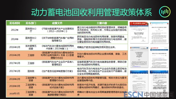 從2012到2018年,國務(wù)院、工信部、發(fā)改委等多個部門相繼發(fā)布了《新能源汽車廢舊動力蓄電池綜合利用行業(yè)規(guī)范條件》《新能源汽車動力蓄電池回收利用溯源管理暫行規(guī)定》等9項政策文件,推動動力電池回收利用體系建設(shè)。