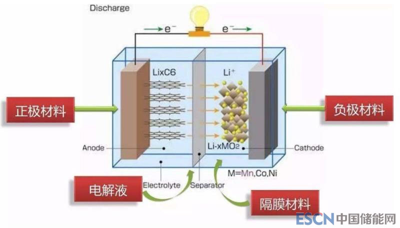 電池內(nèi)部,金屬鋰在負(fù)極失去電子被氧化,成為鋰離子,通過電解質(zhì)向正極轉(zhuǎn)移;正極材料得到電子被還原,被正極過來的鋰離子中和。電解質(zhì)的理想作用,是運(yùn)送且僅運(yùn)送鋰離子。電池外部,電子從負(fù)極通過外界電路轉(zhuǎn)移到正極,中間進(jìn)行做功。理想情況下,電解質(zhì)應(yīng)該是好的鋰離子的載體,但絕不能是好的電子載體。因此在沒有外界電路時(shí),電子無法在電池內(nèi)部從負(fù)極轉(zhuǎn)移到正極;只有存在外界電路時(shí),電子轉(zhuǎn)移才能進(jìn)行。