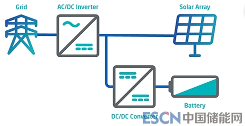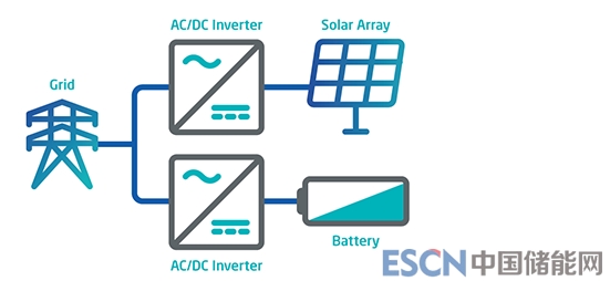 太陽能+儲能共址部署可以是交流耦合,其中儲能系統(tǒng)和太陽能發(fā)電系統(tǒng)位于同一位置,但不共用逆變器。也可以采用直流耦合系統(tǒng),其中太陽能發(fā)電系統(tǒng)和儲能系統(tǒng)耦合在共用雙向逆變器的直流側,其項目成本可以分擔和平衡。根據(jù)NREL公司的一項研究,到2020年,對于共址部署交流耦合和共址部署直流耦合太陽能+儲能來說,系統(tǒng)平衡成本分別降低30%和40%。