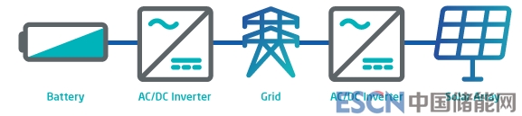?共址部署的交流耦合太陽能+儲能系統(tǒng):太陽能發(fā)電設施和儲能系統(tǒng)位于同一地點,與電網(wǎng)共享一個互連點或具有兩個獨立的互連點。然而,太陽能發(fā)電系統(tǒng)和儲能系統(tǒng)各自連接到單獨的逆變器,并且儲能系統(tǒng)儲器位于太陽能發(fā)電系統(tǒng)的旁邊。它們可以一起發(fā)送或獨立發(fā)送電力。