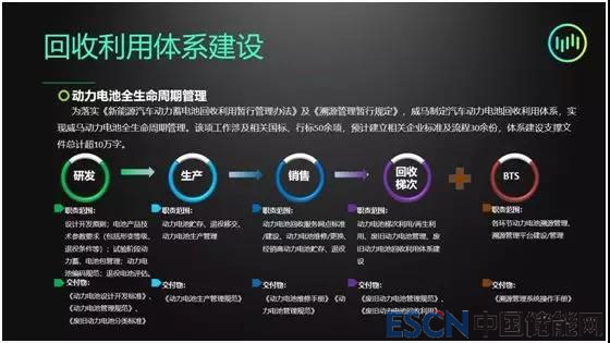 威馬的電池回收利用體系主要由研發(fā)環(huán)節(jié)、生產(chǎn)環(huán)節(jié)、銷售環(huán)節(jié)、回收環(huán)節(jié)、溯源五個板塊構成。