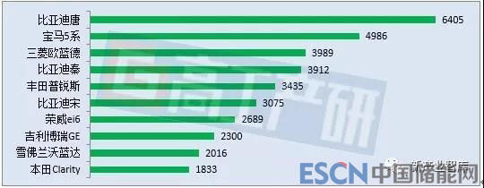 2018年11月全球插電式混合動力乘用車銷量TOP10車型(輛)