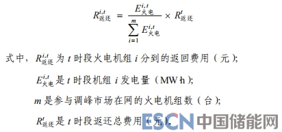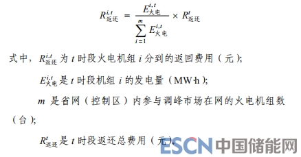 第八十二條 火電機(jī)組因自身原因在省網(wǎng)市場開展時(shí)段內(nèi)每 15 分鐘發(fā)電量偏差超過日內(nèi)發(fā)電計(jì)劃對應(yīng)發(fā)電量 2%時(shí)造成的考核,以及非自身原因造成的與中標(biāo)輔助服務(wù)費(fèi)用之差,返還至所有參與調(diào)峰市場的在網(wǎng)火電機(jī)組,計(jì)算公式如下: