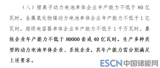 既然不是針對新能源汽車用動力電池的規(guī)范條件,所以2017年“年產能不低于80000套或40億瓦時”的要求自然不會出現。