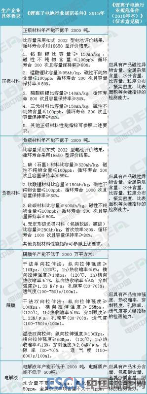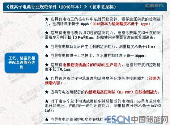 圖為《鋰離子電池行業(yè)規(guī)范條件(2018年本)》(征求意見稿)部分內容截圖