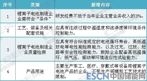 據悉,較2015年的《鋰離子電池行業(yè)規(guī)范條件》,《鋰離子電池行業(yè)規(guī)范條件(2018年本)》(征求意見稿)還有如下變化: