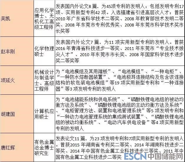 寧德時代的核心技術主要來源于以吳凱、趙豐剛、項延火、胡建國、唐紅輝等為核心的技術研發(fā)團隊以自主研發(fā)的方式進行的技術積累。這5名核心技術人員所取得的專業(yè)資質、重要科研成果和獲獎情況如下: