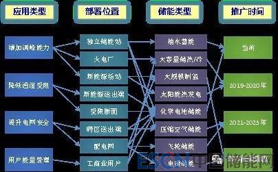 4.應用階段。將不同類型儲能的推廣應用分為四個階段,即“當前”、“2019-2020年”、“2021-2025年”、“2026-2030年”。其中,抽水蓄能和化學電池儲能在現(xiàn)階段已開始推廣應用;下一步可開展大規(guī)模儲熱和太陽能熱發(fā)電技術(shù)的應用推廣;在“十四五”期間,新型壓縮空氣和飛輪儲能的應用有望突破;而在2025年以后,大規(guī)模制氫和電磁儲能有望獲得大規(guī)模應用。