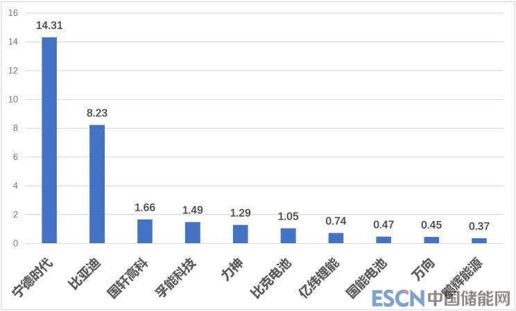 『中國動力電池企業(yè)裝機量(1-10月數(shù)據(jù)/單位:GWh)』