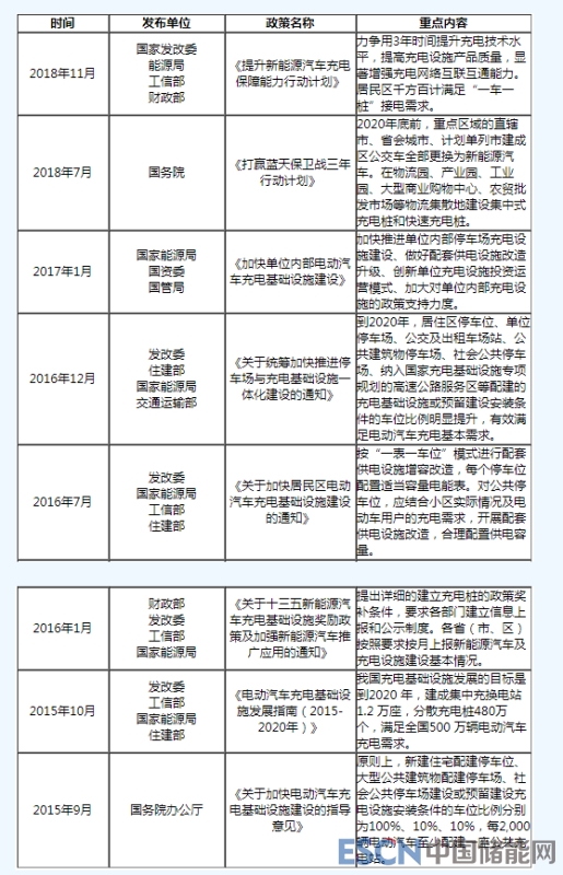 國(guó)家層面關(guān)于充電設(shè)施建設(shè)政策匯總一覽表