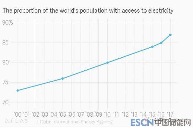 中國(guó)儲(chǔ)能網(wǎng)訊:國(guó)際能源機(jī)構(gòu)(InternationalEnergy Agency,經(jīng)合組織下屬的一個(gè)政府間機(jī)構(gòu),能源政策領(lǐng)域最具影響力的智囊團(tuán)之一)在2018年10月宣布了一項(xiàng)驚人的發(fā)現(xiàn):2017年收集的全球數(shù)據(jù)顯示,缺乏電力的人口有史以來第一次下降到小于10億。