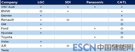 表1 LG在全球主要的乘用車企業(yè)電芯供應(yīng)商占了很全的地位