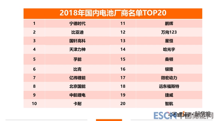根據電池中國的信息,2018年TOP20國內電池廠商名單如下: