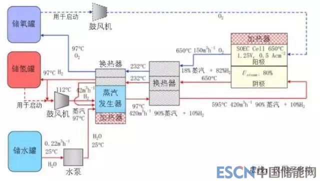 1、H2O電解制H2:高溫電解基本轉(zhuǎn)換模式,電解池效率可達(dá)85%~95%,良好的熱管理設(shè)計下可達(dá)75%~83%的系統(tǒng)效率。