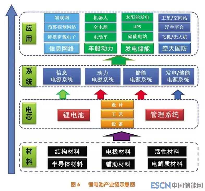中國鋰電池的產(chǎn)業(yè)鏈將更為完善,包括原材料、材料、器件(單體)、模組及系統(tǒng)、應(yīng)用等(圖6),智能制造及智能工廠將成為主流。雖然鋰電池未來市場空間非常大,但截至2018年4月,我國動力電池產(chǎn)能已達(dá)200GWh,而平均產(chǎn)能利用率不足30%,重復(fù)建設(shè)的低端產(chǎn)能過剩,行業(yè)泡沫較大。隨著補貼退坡到期,預(yù)計產(chǎn)業(yè)將迎來大規(guī)模的重組,倒逼產(chǎn)業(yè)升級、提高參與國際競爭的能力。產(chǎn)業(yè)發(fā)展將是規(guī)模聯(lián)盟化、細(xì)分專業(yè)化、智能無人化。同時,電池綠色回收產(chǎn)業(yè)必須布局,形成可持續(xù)發(fā)展態(tài)勢。