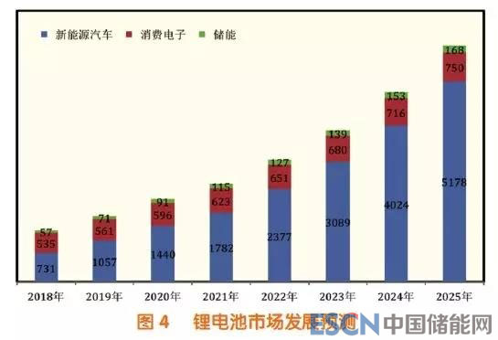 未來鋰電池的市場主要還是三大方面,包括消費電子(拓展為信息及物聯(lián)網(wǎng))、儲能和新能源汽車(拓展為動力)。如圖4所示,市場最大牽引仍然以新能源汽車為主,而且純電動、混合動力以及48V起停應(yīng)用市場并重。同時在物聯(lián)網(wǎng)節(jié)點、機器人等方面的新應(yīng)用有可能實現(xiàn)爆發(fā)式增長。