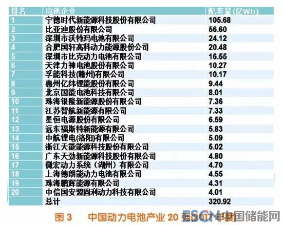 中國的鋰離子電池產(chǎn)業(yè)技術(shù)是從跟蹤研仿逐步走向自主創(chuàng)新的,產(chǎn)品應(yīng)用從最初的手機和筆記本電腦逐步走向動力和儲能應(yīng)用。經(jīng)過20年的發(fā)展,中國已經(jīng)成為鋰離子電池的制造大國和消費大國,從最初的數(shù)家發(fā)展為數(shù)百家,擁有最完整的產(chǎn)業(yè)鏈,全球市場占有率已經(jīng)達(dá)到52%。圖2為近幾年中國鋰離子電池產(chǎn)量的統(tǒng)計圖,2017年總產(chǎn)量已經(jīng)達(dá)到1009億瓦時,銷售收入達(dá)到1589億元。圖3為中國動力電池20強清單,其中,CATL已經(jīng)發(fā)展為全球最大的鋰離子電池制造商。在電動汽車補貼政策牽引下,動力用鋰離子電池迅速發(fā)展,電池類型圓柱、方形、聚合物共存,但方形最多達(dá)到54%,圓柱占26%,聚合物占20%。材料體系從2016年的70%磷酸鐵鋰體系發(fā)展到2017年的磷酸鐵鋰和三元體系共存狀態(tài)(分別占49%和45%)。電池的電性能也不斷提高,大容量方形磷酸鐵鋰單體電池比能量已經(jīng)超過170Wh/kg,高鎳材料21700電池比能量已經(jīng)達(dá)到240~280Wh/kg。但進(jìn)入2018年,人們從頻發(fā)的電動車起火事故中認(rèn)識到安全的重要性,磷酸鹽體系系統(tǒng)比能量和安全性具有一定優(yōu)勢,或?qū)⒂绊憚恿﹄姵刂辛姿猁}和高鎳體系的布局。